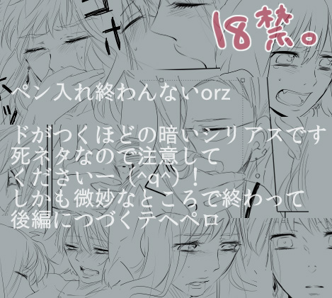 完成してサンプルとか上げるときにまた言いますが暗いし18禁だし人によっては不快になるのわかってて描いてます。